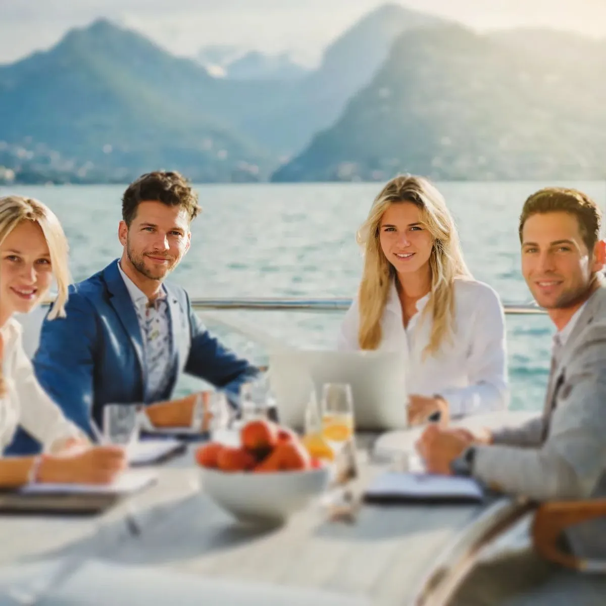 Move your next business gathering from a hotel ballroom to the open sea with corporate yacht rental Dubai solutions from Saibo Yachts. We host everything from focused board meetings and investor presentations to team offsites and client appreciation cruises, all on yachts chosen for privacy, comfort and a strong first impression. Every corporate yacht charter Dubai booking is planned to support real work and real conversations, not just a scenic backdrop. Quiet indoor lounges make it easy to talk numbers and strategy, while open decks give guests space to network, reset and take in the skyline between sessions. Stable cruising routes, reliable connectivity options and a professional crew keep your agenda running on time without unnecessary interruptions. Whether you are planning an intimate leadership retreat or a larger corporate celebration, we help you choose the right yacht rental Dubai package, timing and route. The result is a business event that feels elevated and memorable while still staying firmly professional and aligned with your brand.