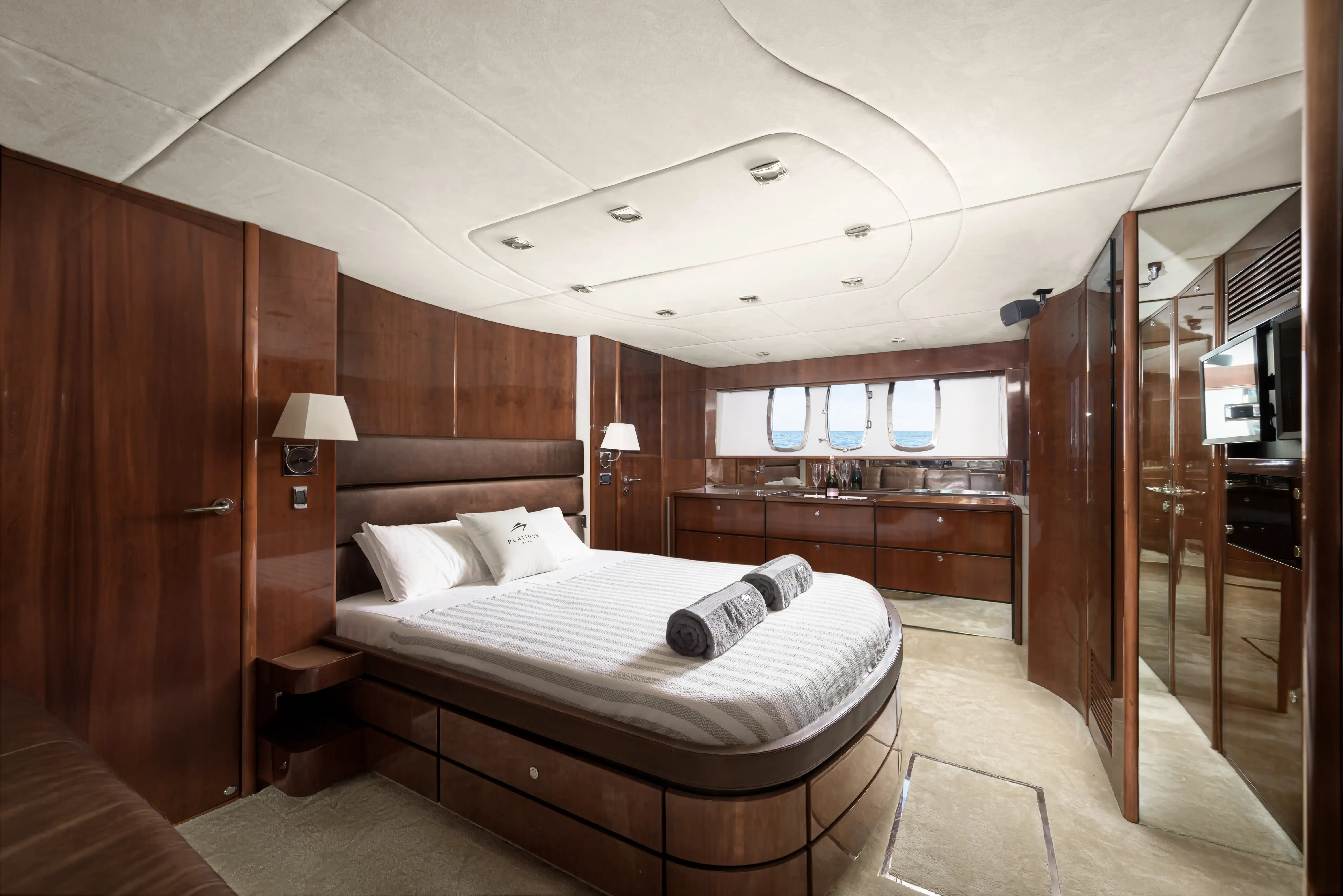 The Fairline Platinum 68 represents the pinnacle of British yacht building tradition combined with modern innovation. This 21-meter vessel showcases the refined elegance and attention to detail that Fairline is renowned for. Her platinum-grade finish and sophisticated design philosophy create a yacht that's equally at home cruising the English Channel or Mediterranean islands. With spacious accommodations for 8 guests and contemporary amenities throughout, the Platinum 68 offers a genteel yachting experience. Her advanced navigation systems and premium audio ensure every journey is as smooth as it is entertaining. Experience the best of British maritime heritage aboard this distinguished vessel with exceptional craftsmanship.